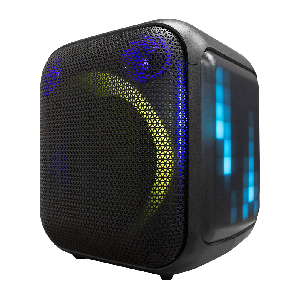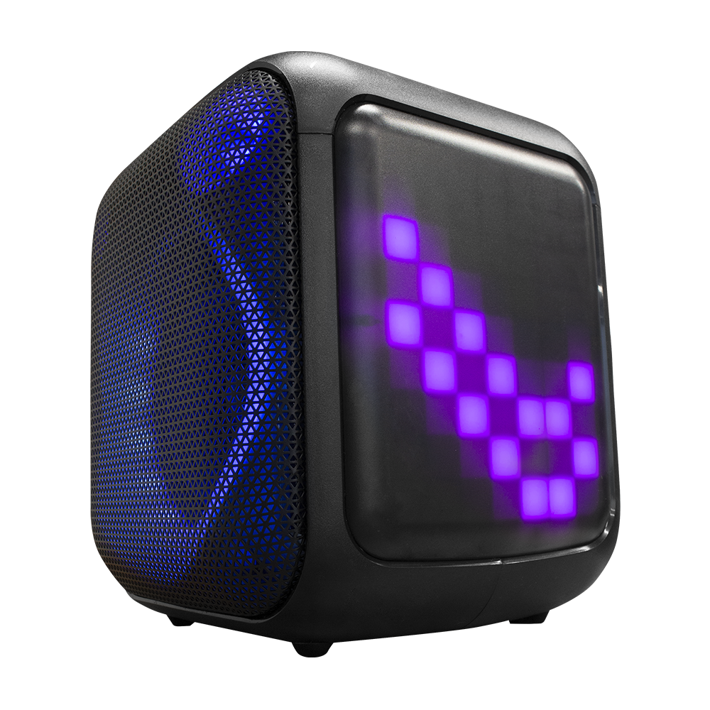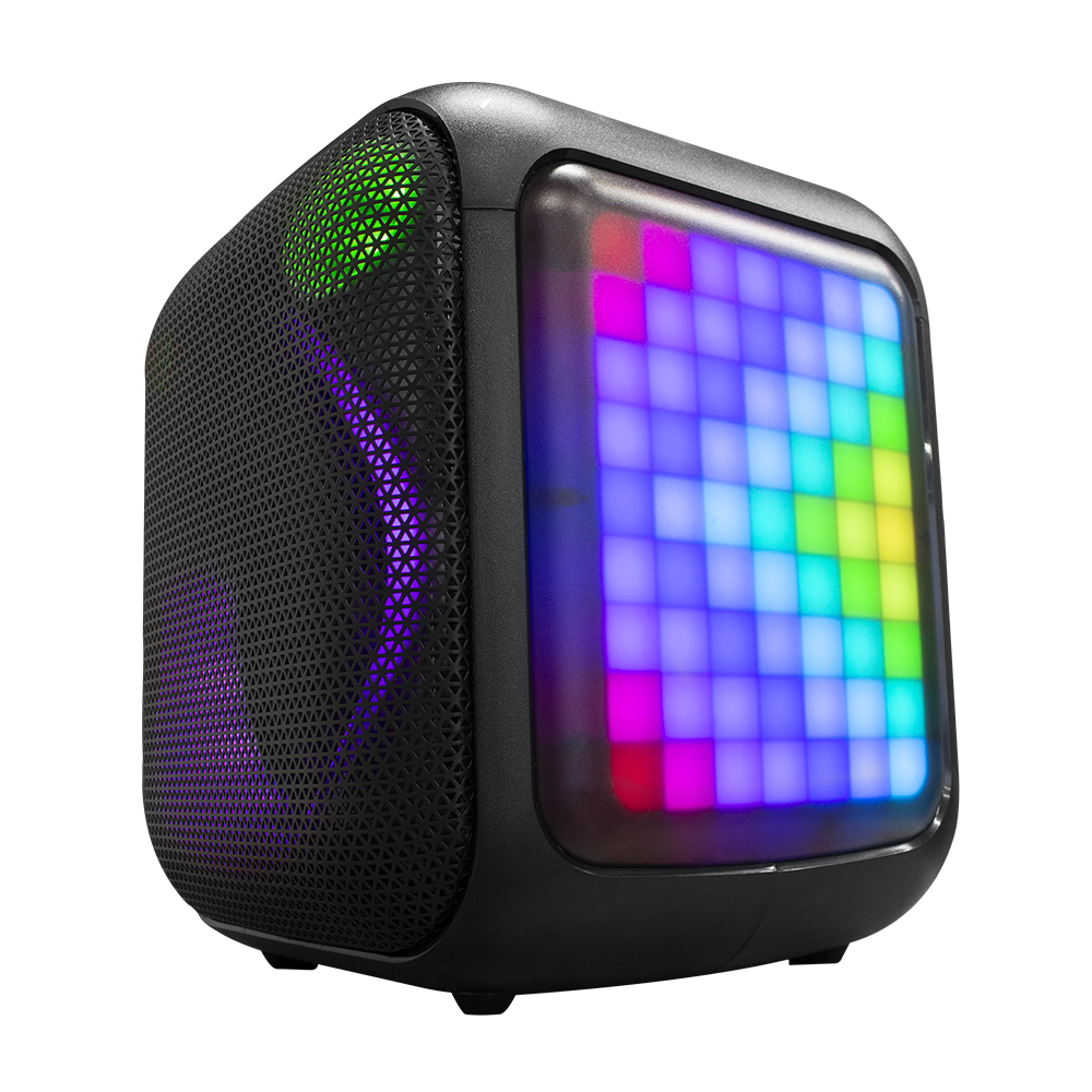 The Cubix karaoke cube speaker will immerse the room in rich sounds and big booming bass. The rechargeable battery will keep the party going all day. Glowing lights illuminate from all sides of the speaker creating a futuristic light show to accompany your tunes.